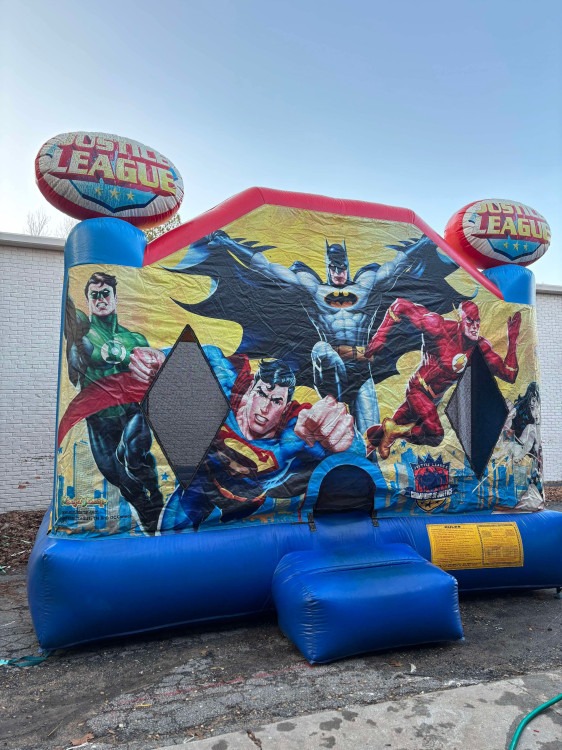 Large Justice League BouncerParty Package 2:Large Justice League Bouncer103268211_3268205_26949410000 Are you planning a superhero-themed party for your child's birthday? Look no further than the Justice League Bouncer! This inflatable ride measures 13 x 13 feet, providing plenty of space for kids to jump, bounce and play together. Featuring iconic characters like Superman, Batman, and Wonder Woman, this bouncer will transport your little ones into the world of their favorite superheroes. With its durable vinyl construction, safety netting, and easy access ramp, parents can relax and enjoy the party while the kids have a blast. Rent the Justice League Bouncer for your next event and watch your child's superhero dreams come true.Large purple passion bounce houseParty Package 2:Large purple passion bounce house103268211_3268205_26737710000 Experience the excitement with this large, eye-catching inflatable that's designed for fun. Boasting a bold purple hue and spacious interior, it's perfect for high-energy bounces and creating memorable moments during your rental experience.Large Rainbow bounce houseParty Package 2:Large Rainbow bounce house103268211_3268205_26737930000 Step into a world of vibrant fun with the Large Rainbow Bounce House—a colorful inflatable oasis that turns any event into a playground of joy. Perfect for birthdays, school functions, or family gatherings, it's your go-to rental for safe, high-energy bouncing and sliding adventures that everyone will remember.